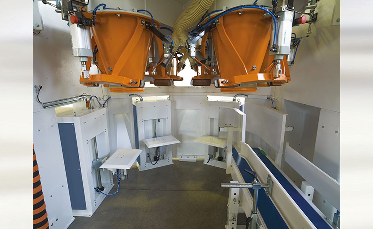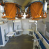- Le système de vibration des sacs a été entièrement repensé et le SBM® remplace intégralement le système de racks latéraux ; le produit est désormais mis en vibration par le bas pour un tassement plus rapide et plus efficace à l’intérieur du sac. La plaque vibrante du sac est positionnée pneumatiquement, permettant un réglage précis, tandis que l’unité de vibration est commandée par un excentrique mécanique à moteur unique. Le SBM® offre ainsi une efficacité de tassement accrue et une sécurité globale parmi les meilleures du marché.