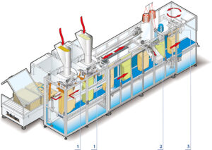 Changement de format entièrement automatique en fonction de la configuration de la machine choisie et de la gamme de sacs à produire.