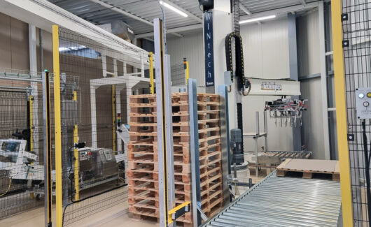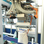 Le sac vide est récupéré à l’intérieur de l’entrepôt à l’aide de ventouses.