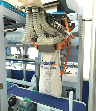 Production maximale de 500 à 600 sacs/heure avec des produits à écoulement libre.