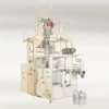 Ligne d'emballage avec machine d'emballage verticale VFFS (Vertical Form Fill Seal) et carrousel à vide pour l'emballage de sacs de produits, en poudre ou en granulés, jusqu'à un poids de 25 kg.