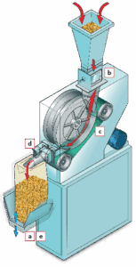 a. Système de vibration, par l'intermédiaire d'un excentrique mécanique, du sac pendant le remplissage.