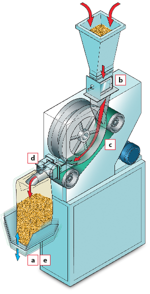 b. Canal de régulation du débit du produit supérieur avec inspection visuelle.