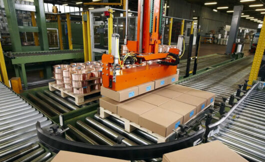 - L'aire de palettisation est conçue avec tous les composants indispensables à une ligne de gestion de palettes performante. Des convoyeurs spéciaux aux entrepôts automatisés, nous sommes en mesure de gérer et de fournir une solution complète.