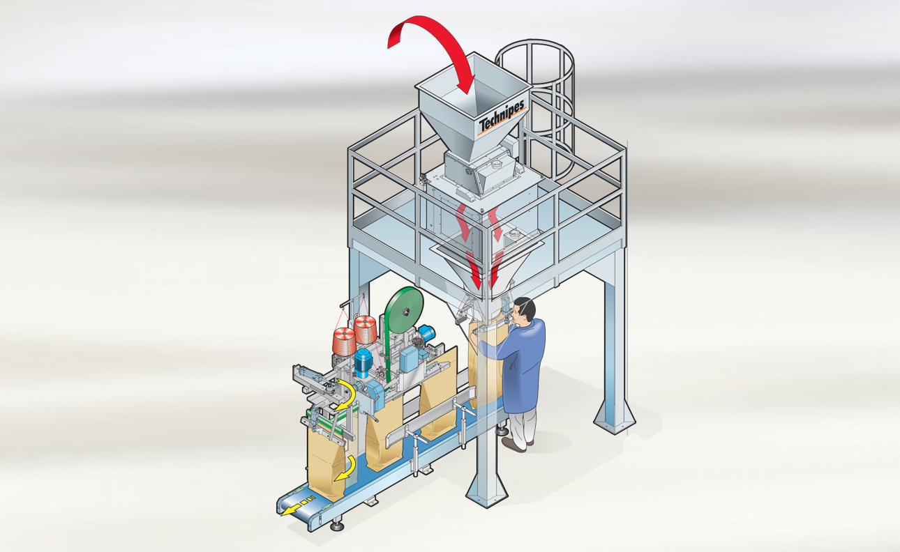 - Opération de pesage en vrac et par chute pour des poids de sacs précis