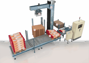 - Station de palettisation Zone de dépose des sacs suivant les schémas de palettisation.