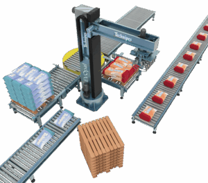 Spécialement utilisé pour les grandes cadences, le WINtech peut être doté du magasin automatique de palettes vides. Capacité: jusqu’à 15 palettes avec transfert des palettes vides en zone de pallettisation.