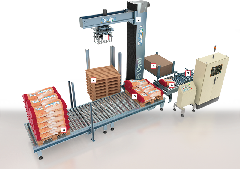 - Station de palettisation Zone de dépose des sacs suivant les schémas de palettisation.