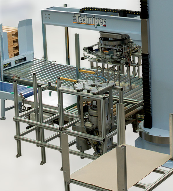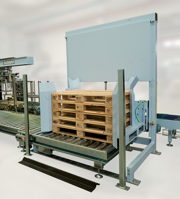 Spécialement utilisé pour les grandes cadences, le WINtech peut être doté du magasin automatique de palettes vides. Capacité: jusqu’à 15 palettes avec transfert des palettes vides en zone de pallettisation.